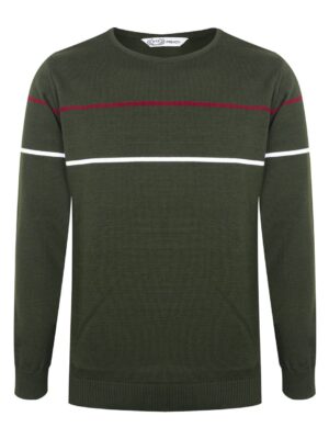پلیور بافت مردانه مدل یقه گرد عمود بافت زیتونی