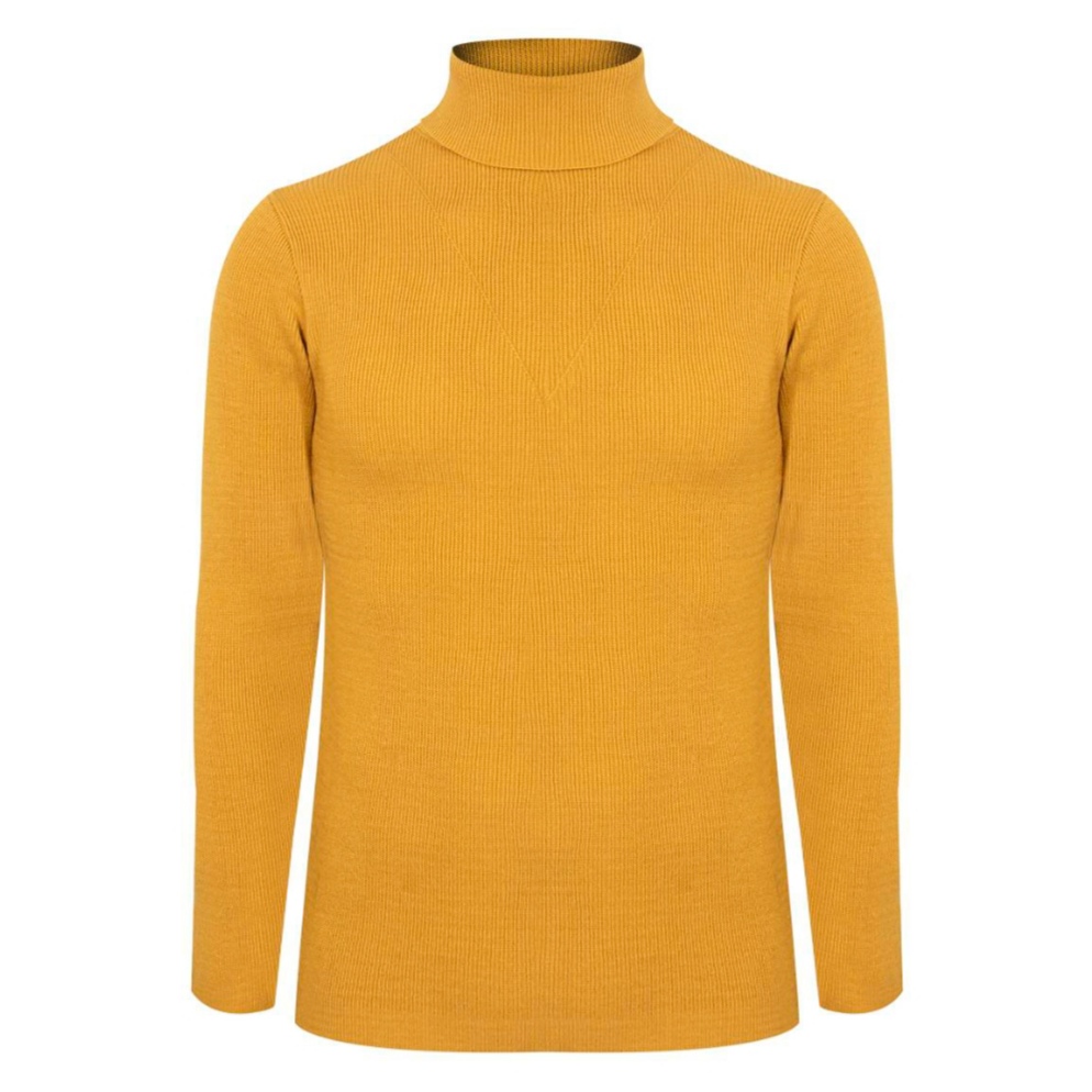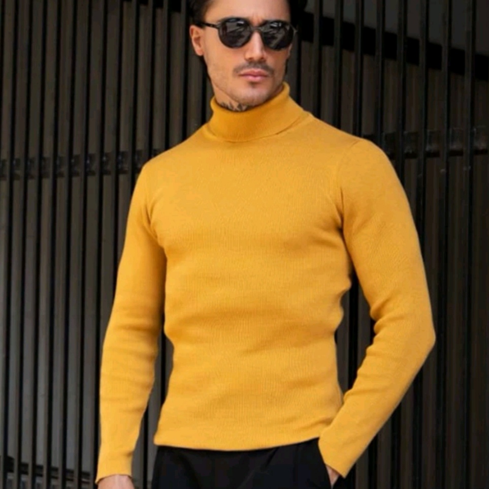 پلیور بافت مردانه مدل یقه اسکی اندامی زرد