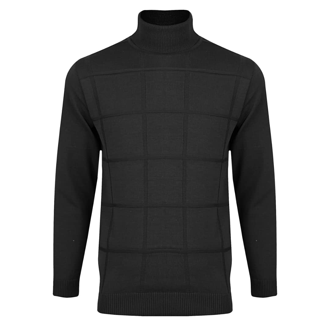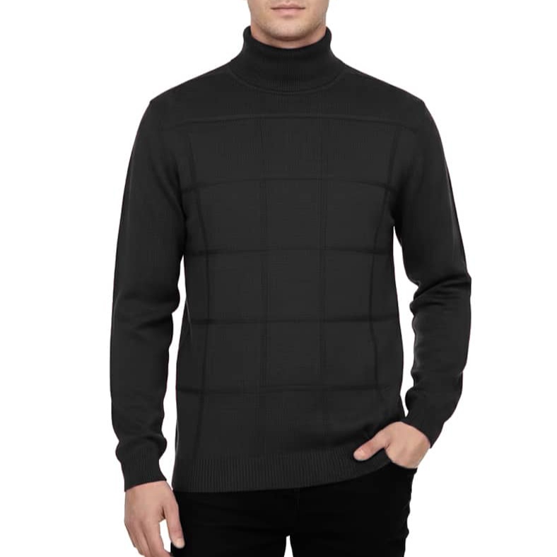 پلیور بافت مردانه مدل یقه اسکی چهارخانه مشکی
