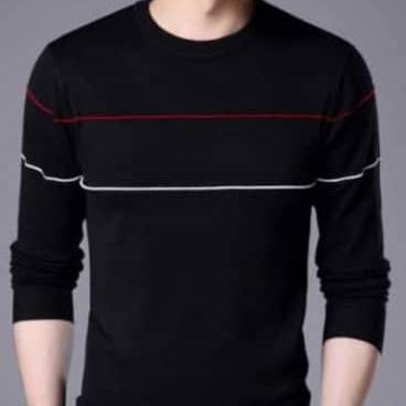 خانه لباس مردانه ژاکت و پلیور مردانه پلیور بافت مردانه مدل یقه گرد نیم رگلان مشکی